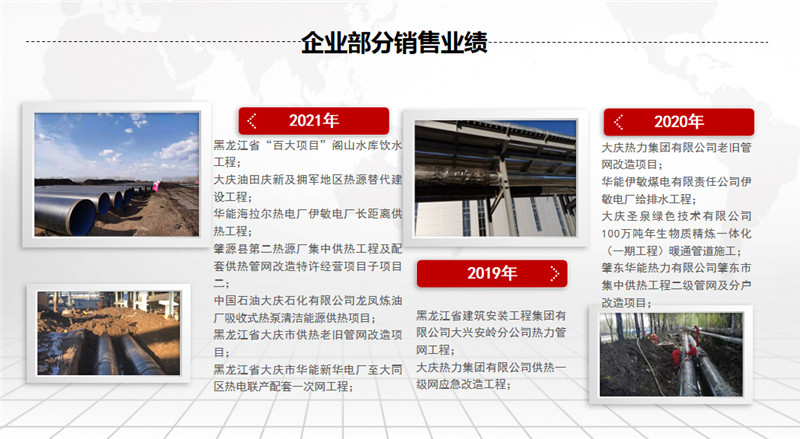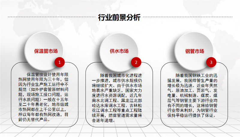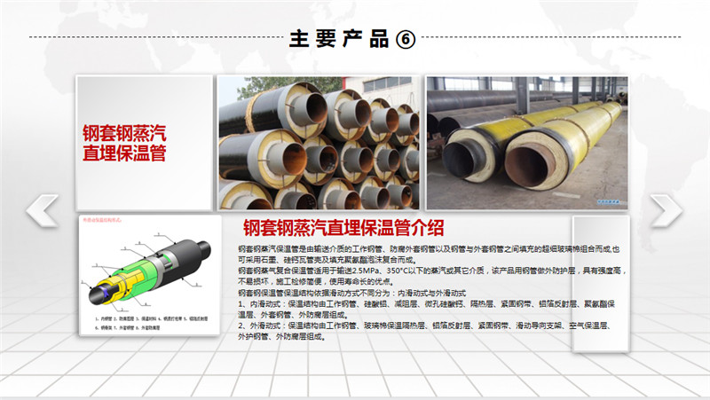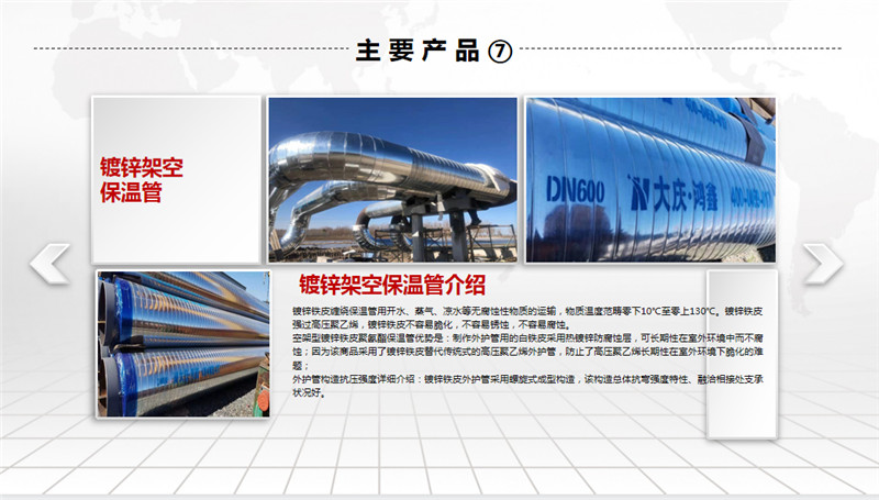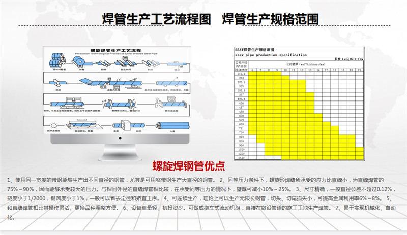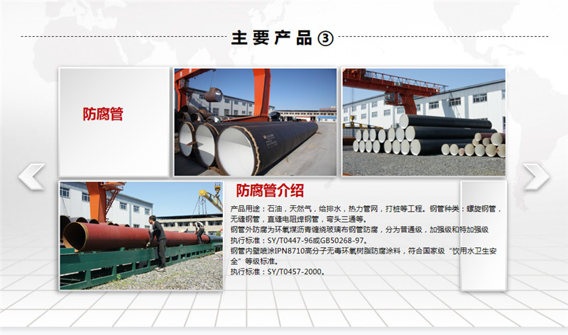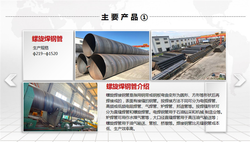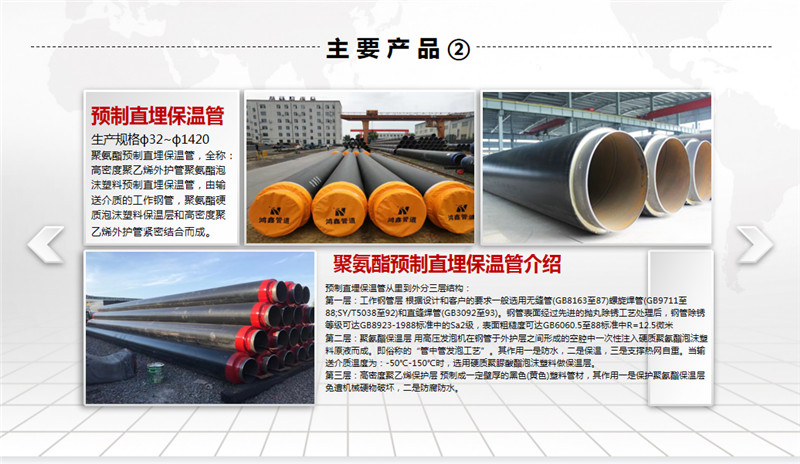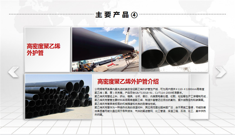 公司擁有先進(jìn)的螺旋焊鋼管生產(chǎn)線、高密度聚乙烯外護(hù)套管生產(chǎn)線及聚氨酯泡沫塑料預(yù)制直埋保溫管生產(chǎn)線。螺旋焊鋼管生產(chǎn)規(guī)格為ф219~ф1520,年生產(chǎn)能力5萬噸左右;高密度聚乙烯外護(hù)管及聚氨酯泡沫塑料預(yù)制直埋保溫管和鋼套鋼蒸汽保溫管,生產(chǎn)規(guī)格為ф32~ф1420,年生產(chǎn)能力500千米;三PE聚乙烯防腐管,生產(chǎn)規(guī)格為ф159~ф1520,年生產(chǎn)能力200千米。產(chǎn)品廣泛用于輸送石油、天然氣、煤氣、化工物料、煤漿、礦漿等,也用于建筑、熱力、電力、航空和機(jī)械領(lǐng)域。
