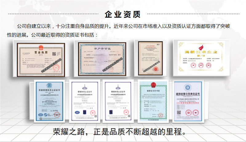 公司牢固樹立以人為本,質(zhì)量**的發(fā)展理念,聘用了國內(nèi)**技術(shù)人才和管理專家,視質(zhì)量為企業(yè)生*,視技術(shù)研發(fā)為企業(yè)發(fā)展的動力,現(xiàn)已擁有自主研發(fā)的實用新型專利多項。公司依據(jù)特種設(shè)備安全技術(shù)規(guī)范,取得了《特種設(shè)備制造許可證》,并已通過ISO9000質(zhì)量體系認(rèn)證,質(zhì)量保證體系運(yùn)行正常,同時**保證了產(chǎn)品質(zhì)量。