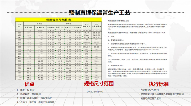 公司嚴(yán)格按照**標(biāo)準(zhǔn)組織生產(chǎn),執(zhí)行標(biāo)準(zhǔn):螺旋焊鋼管GB/T9711-2017、SY/T5037-2018;預(yù)制直埋保溫管及管件GB/T 29047-2021;產(chǎn)品行銷**各地,亦可攜技術(shù)人員到用戶指定地點建廠生產(chǎn)加工,產(chǎn)品得到用戶一致好評。